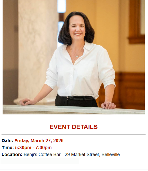 Join the Bay of Quinte Provincial Liberal Association and friends on March 27th to Meet & Greet MPP Lee Fairclough.